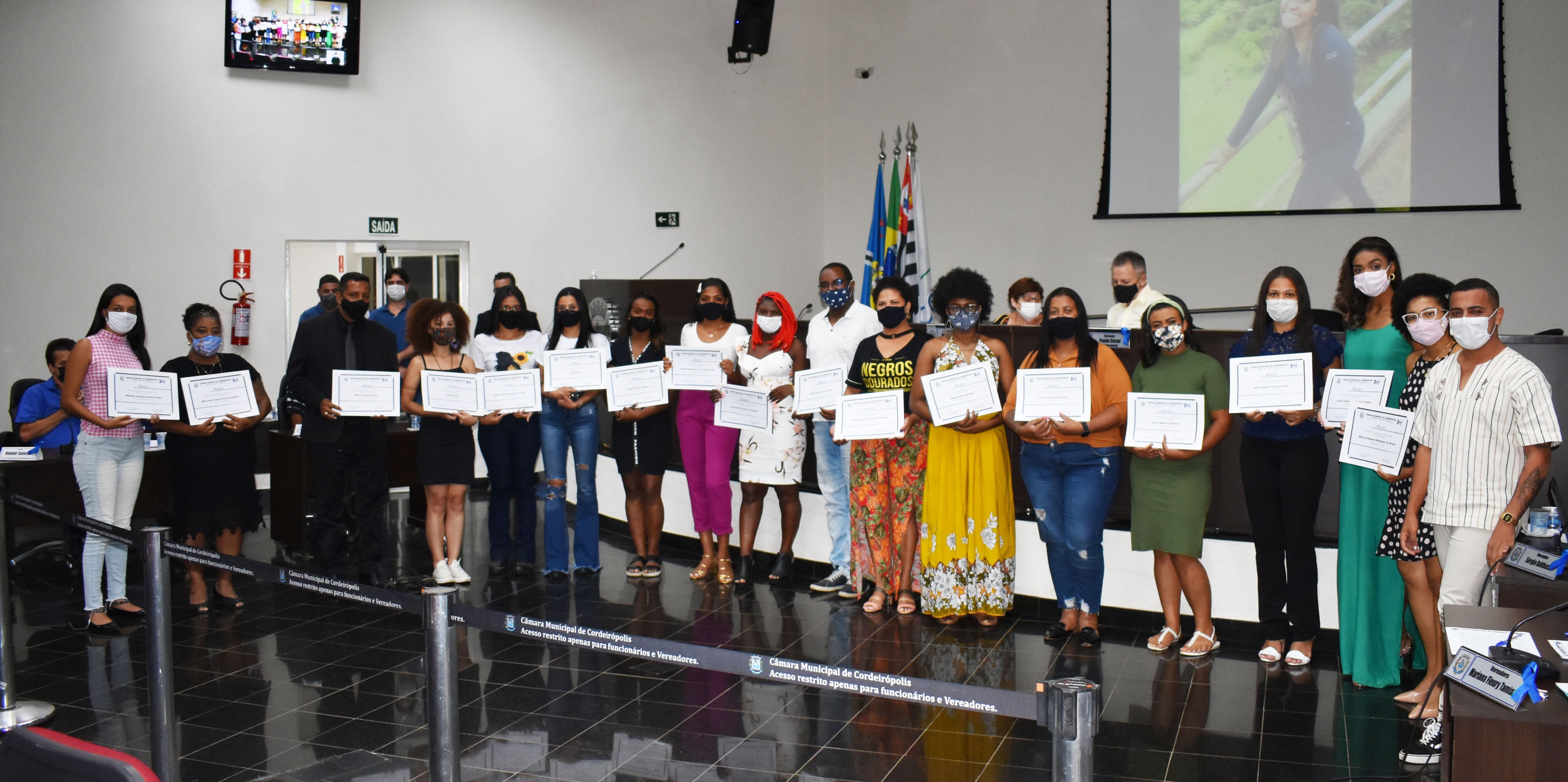 Conselho Municipal de Políticas Públicas pela Igualdade Racial - COMPPIR, em razão da comemoração do dia da Consciência Negra; Vitoria Cristina Martins Rodrigues, em razão da comemoração do dia da Consciência Negra; Stefany dos Santos de Jesus, em razão da comemoração do dia da Consciência Negra; professores negros da rede municipal de ensino; Fabiana Cristina de Oliveira; Evandro Pedro da Silva Sousa; Rute de Oliveira Gomes.