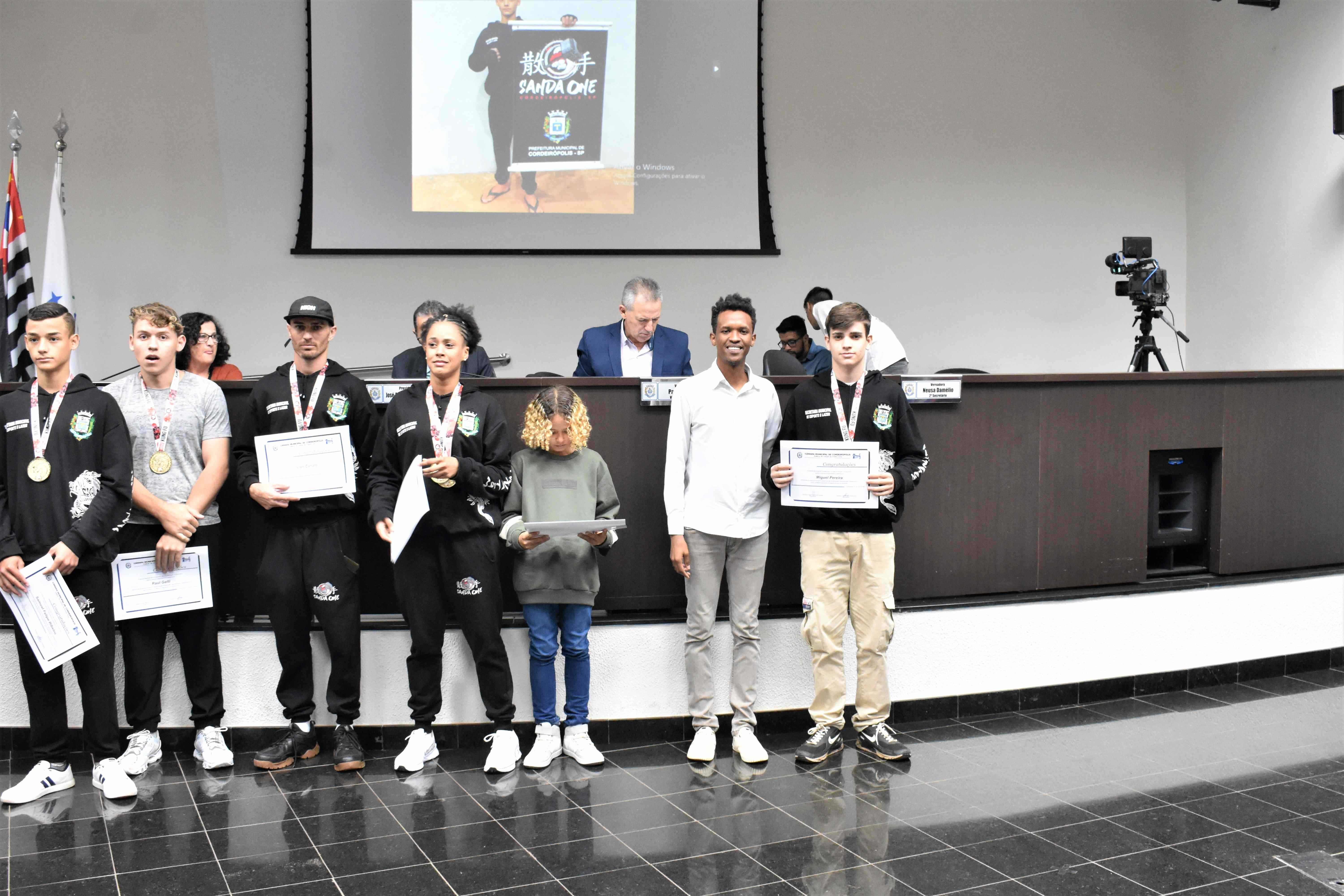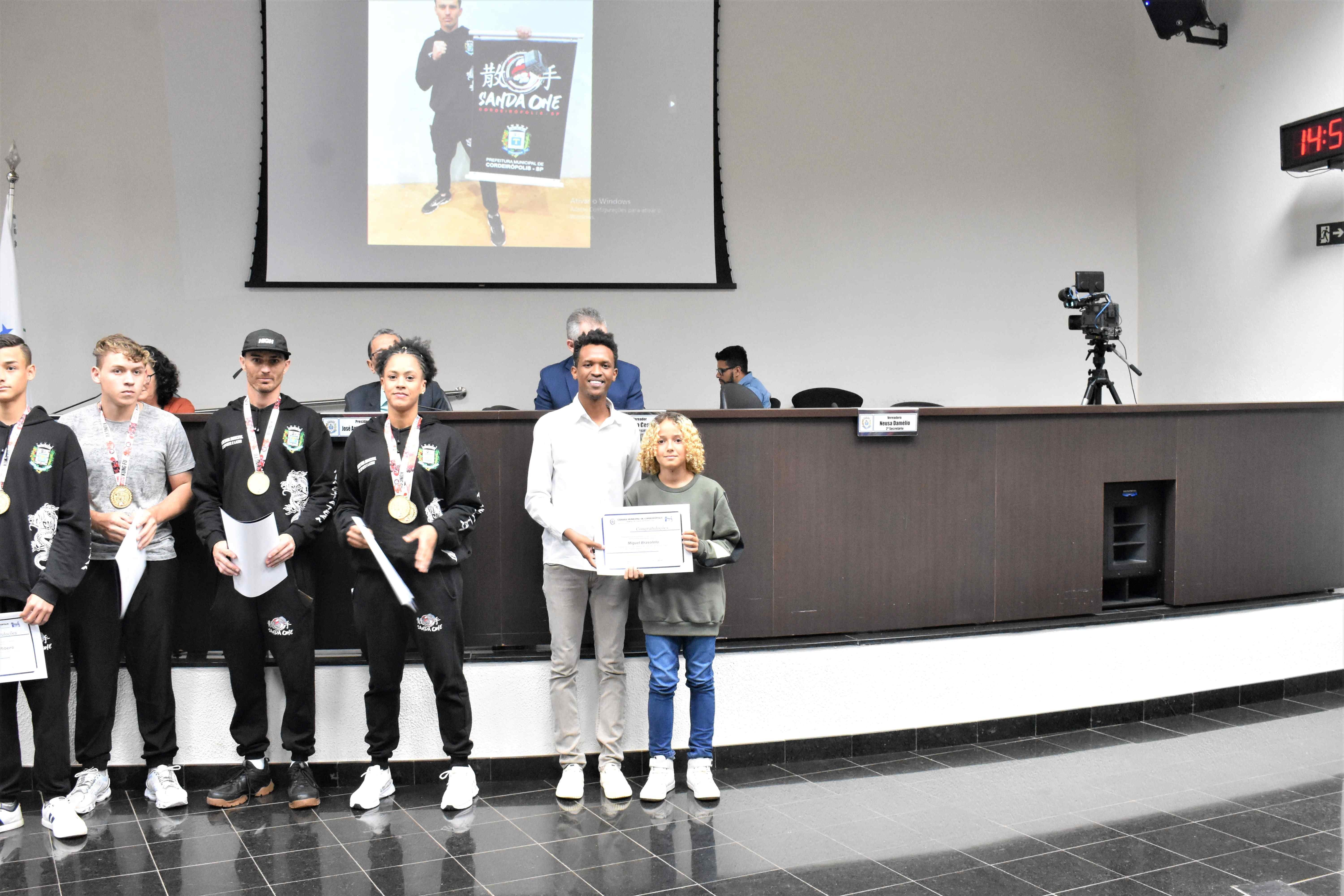 Na última quinta-feira (29) em Sessão Solene na Câmara Municipal, a Equipe Kung Fu Sanda One de Cordeirópolis foi homenageada através da Moção de nº 30/23 de autoria do vereador Diego Fabiano (MDB), a qual propõe voto de congratulações e aplausos.