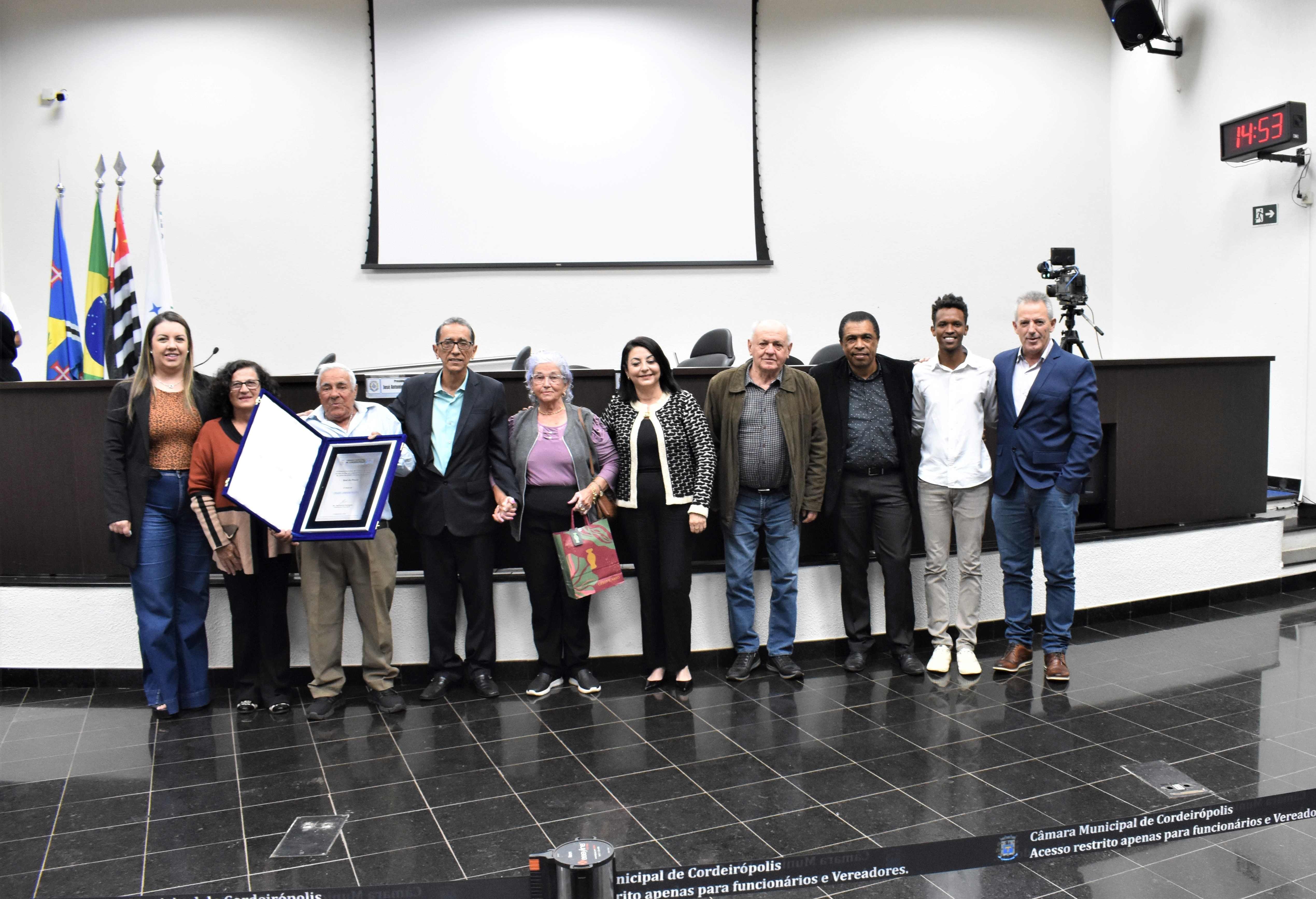 Noé de Paula, o mais recente Cidadão Cordeiropolense, recebeu a mais nobre honraria desta Casa Legislativa, ontem à noite (29) em Sessão Solene, através da Decreto Legislativo de nº 10/23 de autoria do presidente e ver. José Antônio Rodrigues (MDB).