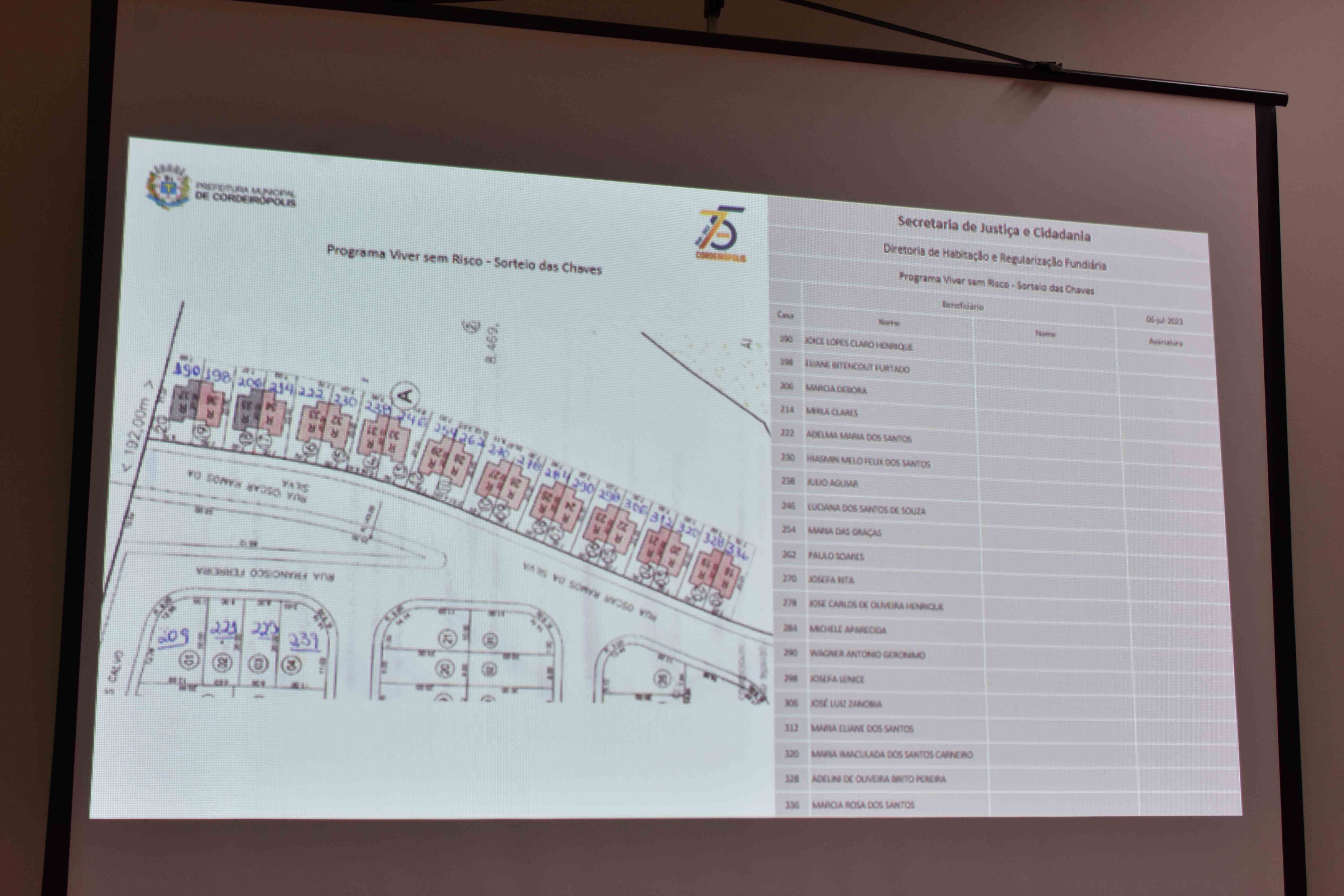 Vereadores participaram do sorteio de chaves para as 20 famílias contempladas pelo programa Pró-Moradia na Câmara Municipal de Cordeirópolis. A realização do evento foi da Secretaria da Justiça e Cidadania a qual tem por secretária, Sandra Cristina Santos. Estiveram presentes os Exmos. prefeito José Adinan Ortolan (MDB) e a vice prefeita Fátima Celin (PT), Secretários Municipais, além dos contemplados e familiares. A Câmara Municipal na ocasião representada pelo vice-presidente ver. Paulo Cesar Morais de Oliveira (PL) parabenizou a todos os envolvidos!