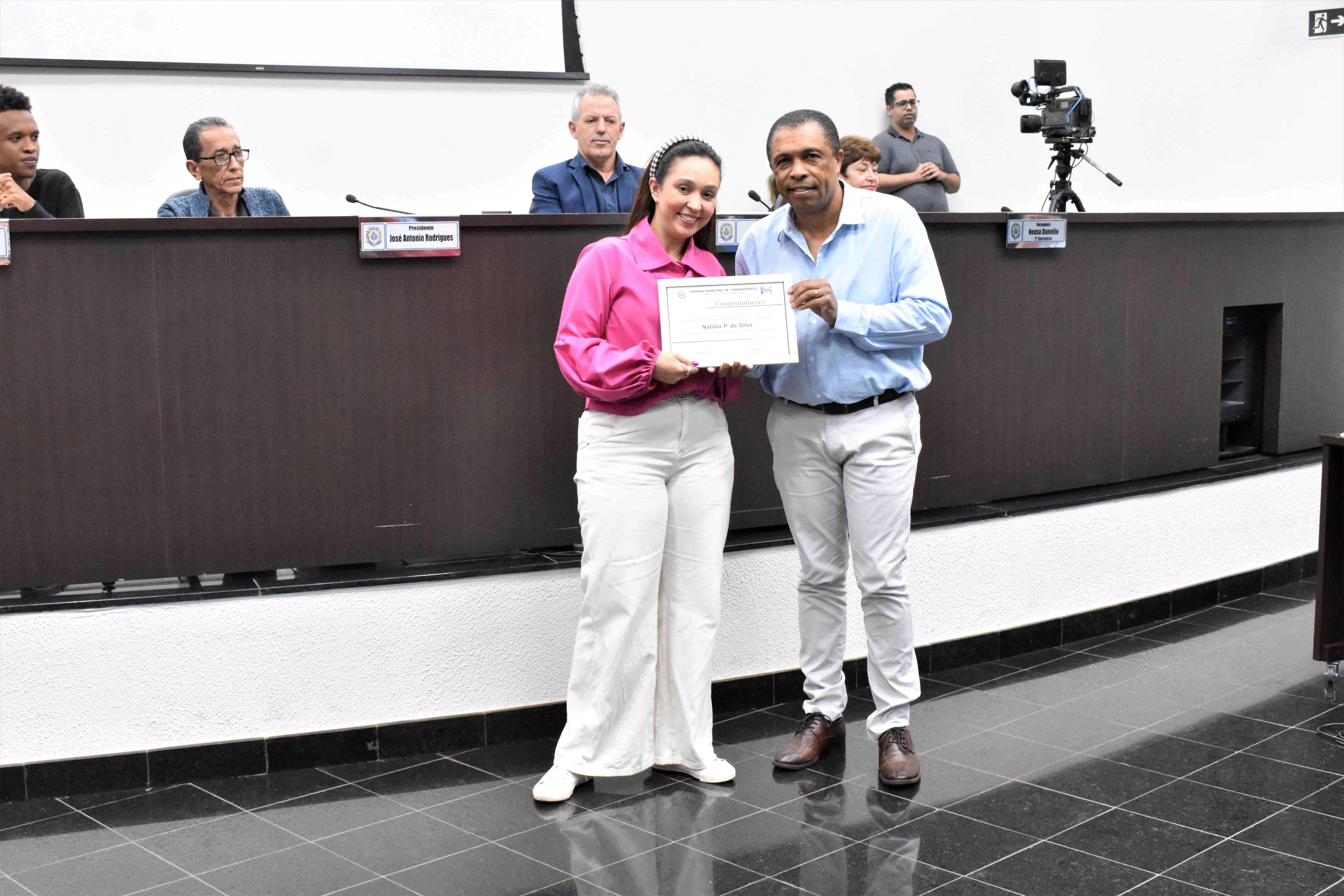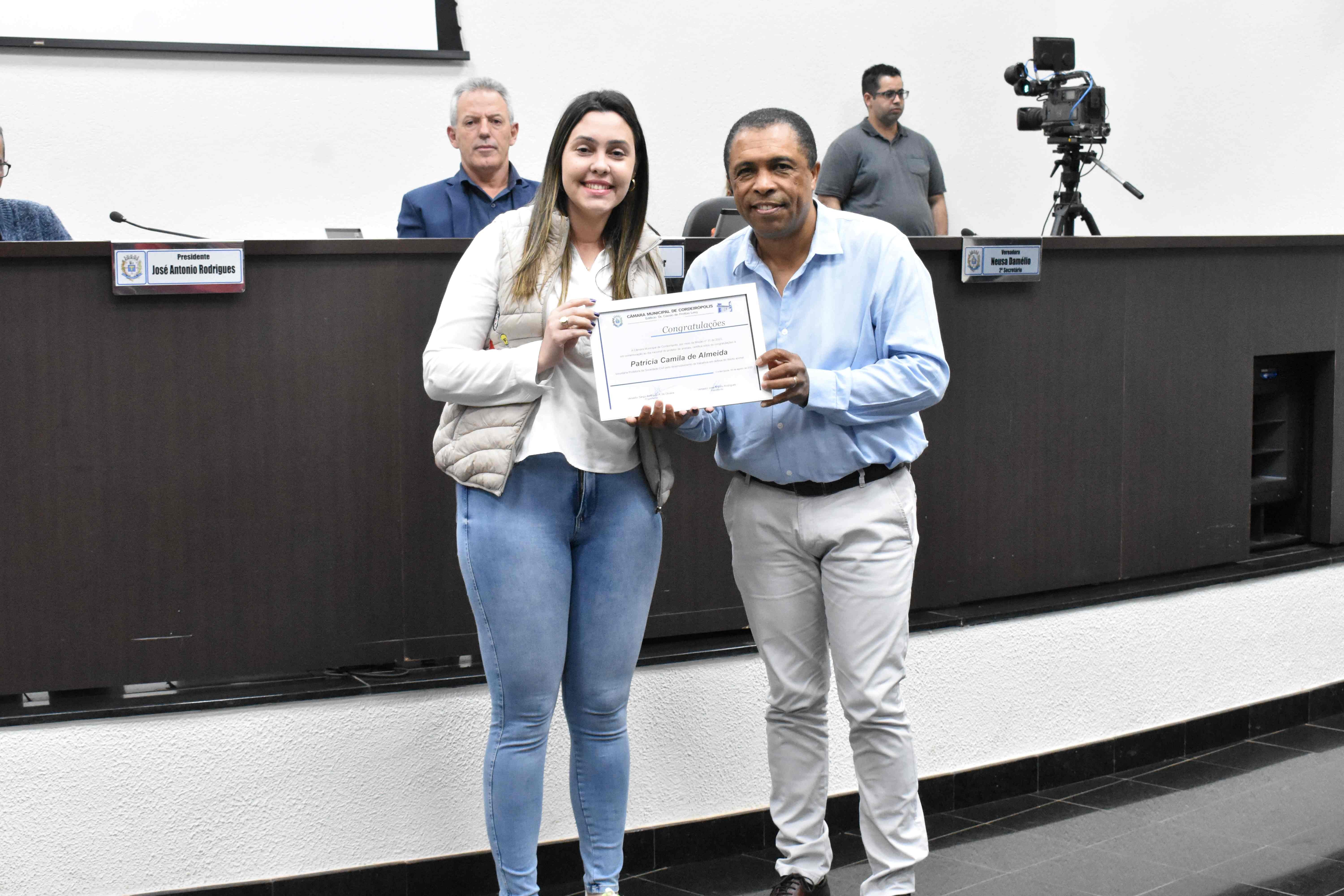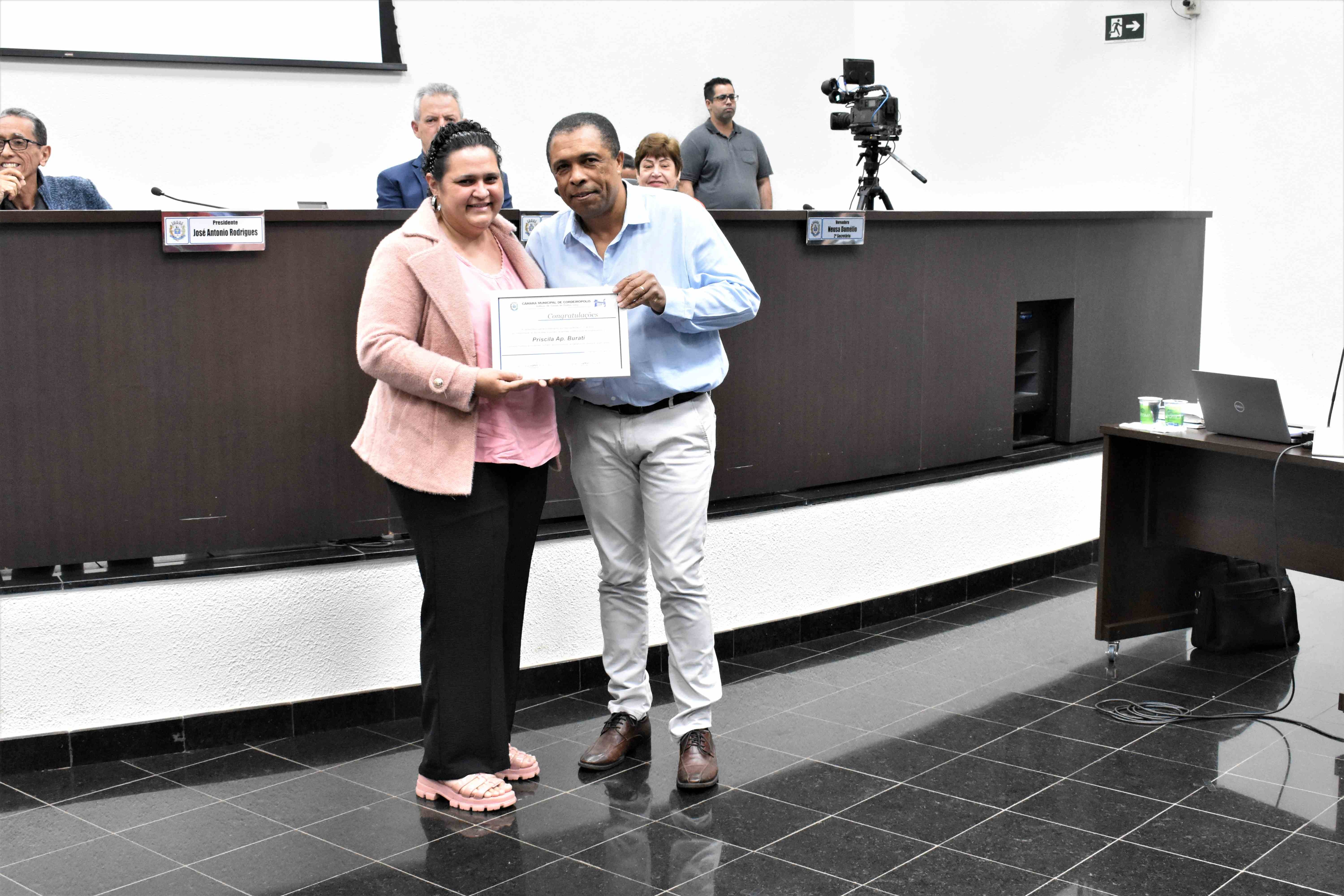 Os diplomas foram entregues à Coordenadora Mun. do Bem Estar Animal, Amanda Lucke, e as representantes da Sociedade Civil, as Protetoras de Animais: Natália P. da Silva, Priscila Ap. Burati e Patrícia Camila de Almeida, na sessão ordinária desta terça-feira (08).