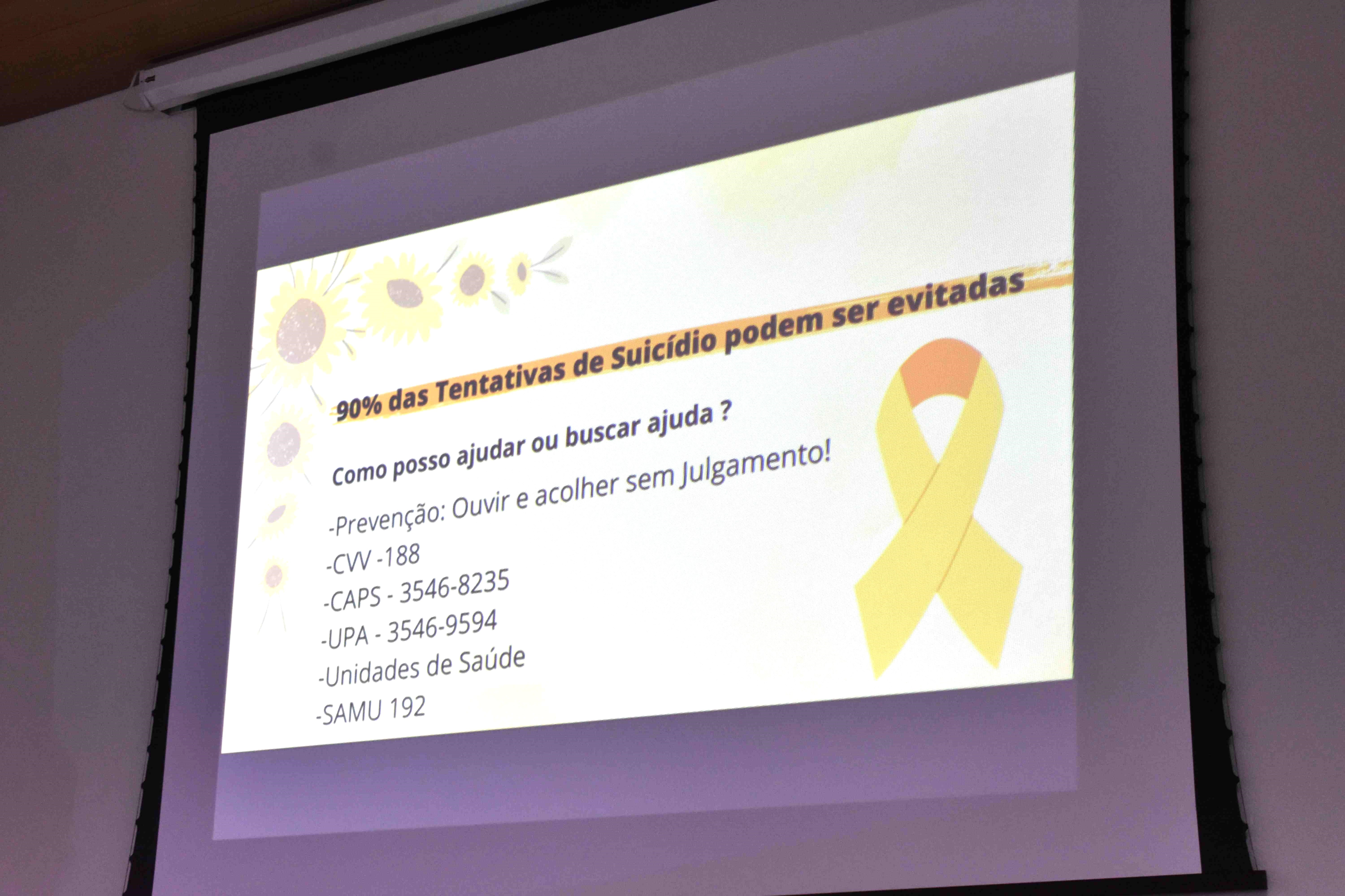 Alertou a população que a maior parte dos casos de suicídio podem ser evitados, se houver um tratamento de saúde mental qualificado e informações de qualidade. Portanto é preciso pedir ajuda e você também pode ajudar alguém: Ouvindo e acolhendo sem Julgamento!
