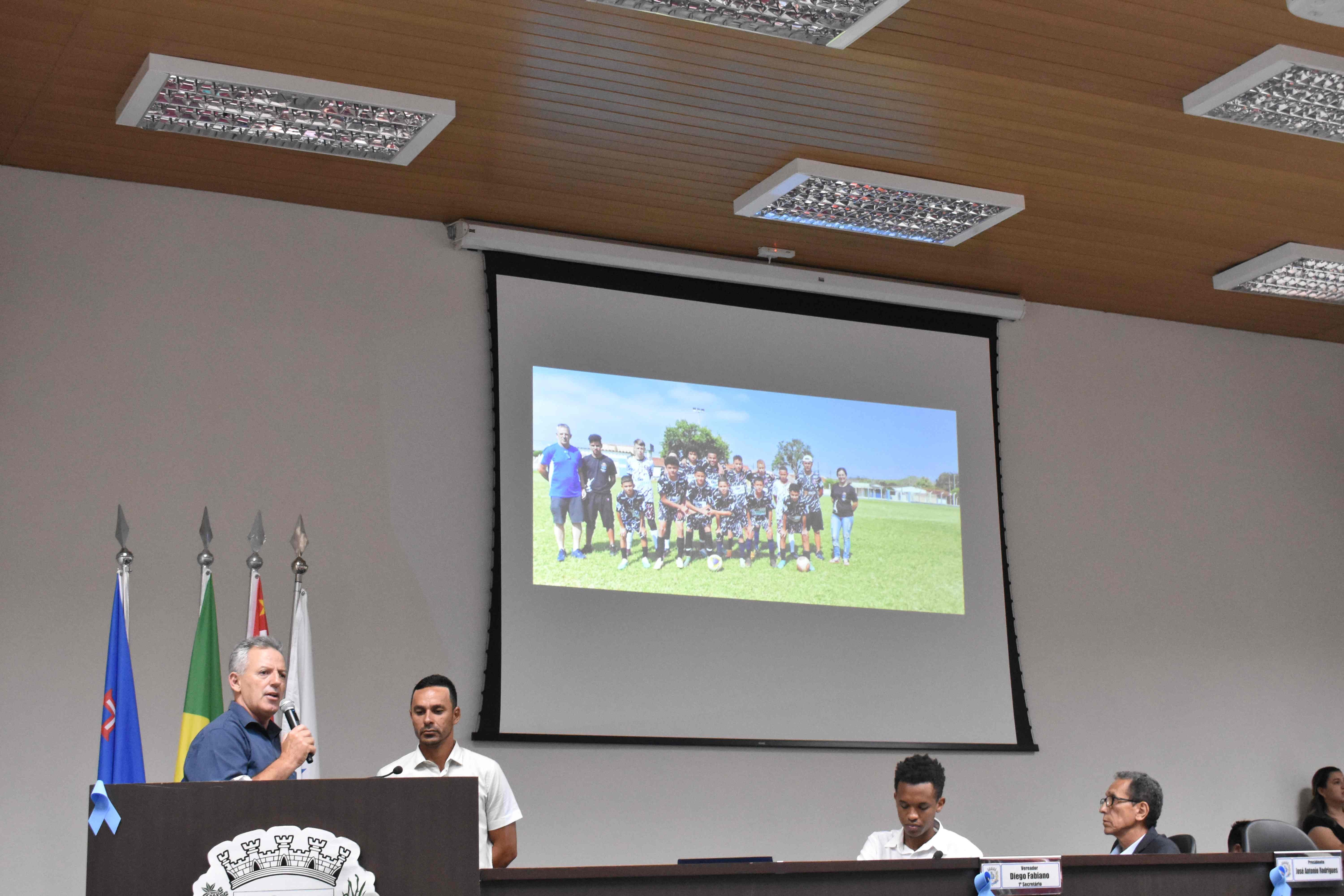Luiz Carlos de Souza, (Luizinho como é carinhosamente chamado) recebeu a medalha “João Pacífico”, uma homenagem do vereador Paulo Cesar Morais, por seu empenho em promover socialização, disciplina, trabalho em equipe, liderança, respeito, perseverança e solidariedade através do esporte em nosso município.